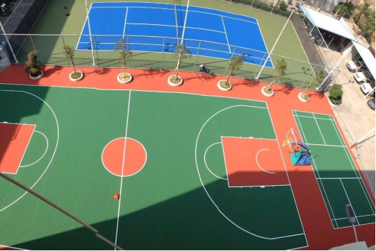 硅PU面層堅(jiān)韌、密實(shí),不易被鞋底或其它硬物刮花,通過(guò)簡(jiǎn)易的沖洗即可長(zhǎng)期保持球場(chǎng)光潔如新。